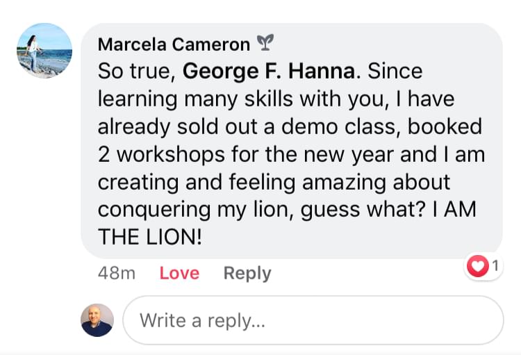 "Since learning many skills with you, I have already sold out a demo class, I booked 2 workshops..."
